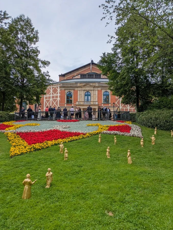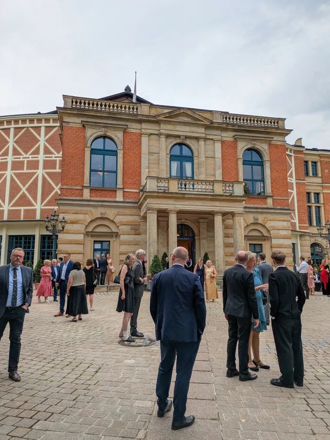 Nun aber zu dem, warum ich heute hier bin. Die Musik. Ich liebe die Oper und ganz besonders die Musik Richard Wagners. Ich war schon in vielen Opernhäusern und in Dutzenden Aufführungen. Von Frankfurt bis an die New Yorker MET. Aber noch nie war ich in einem Opernhaus, das extra für einen Komponisten vom Komponisten für seine Musik gebaut wurde. Die Akustik ist einzigartig. Sie lässt sich nicht in Wörtern beschreiben und genau das macht sie so magisch. Die Musik wirkt gedämpft und mystisch. Das passt perfekt zum schleiherhaften Vorspiel. Die Musik schwebt wie der Nebel über dem Rhein. Die Musik fließt sanft durch den ganzen Abend, während die Sängerinnen und Sänger präsent sind, ohne dabei zu sehr im Mittelpunkt zu stehen. Das Gesamtkunstwerk ist eine himmlische Harmonie. Genau das wollte Wagner und genau das hat er geschafft. Alles hängt zusammen und alles ist unfassbar schön. Ob es die 200 Euro wert war? Wahrscheinlich finanziell nicht, aber emotional für mich auf jeden Fall. Die Zeit vergeht wie im Flug und ich bin erschreckt, als ich die Worte „Schwüles Gedünst schwebt in der Luft; lästig ist mir der trübe Druck!“ höre. Sie leiten das Finale der Oper ein. Die letzten 12 Minuten des Rheingolds sind mein absolutes Lieblingsstück klassischer Musik und mein meistgeklicktes Youtube Video. Sie sind vollkommene musikalische Perfektion, elysische Transzendenz und häufige Inspiration beim Schreiben meiner Reiseberichte. Und so endet 12 Minuten später mein kleiner Lebenstraum in donnerndem Applaus.